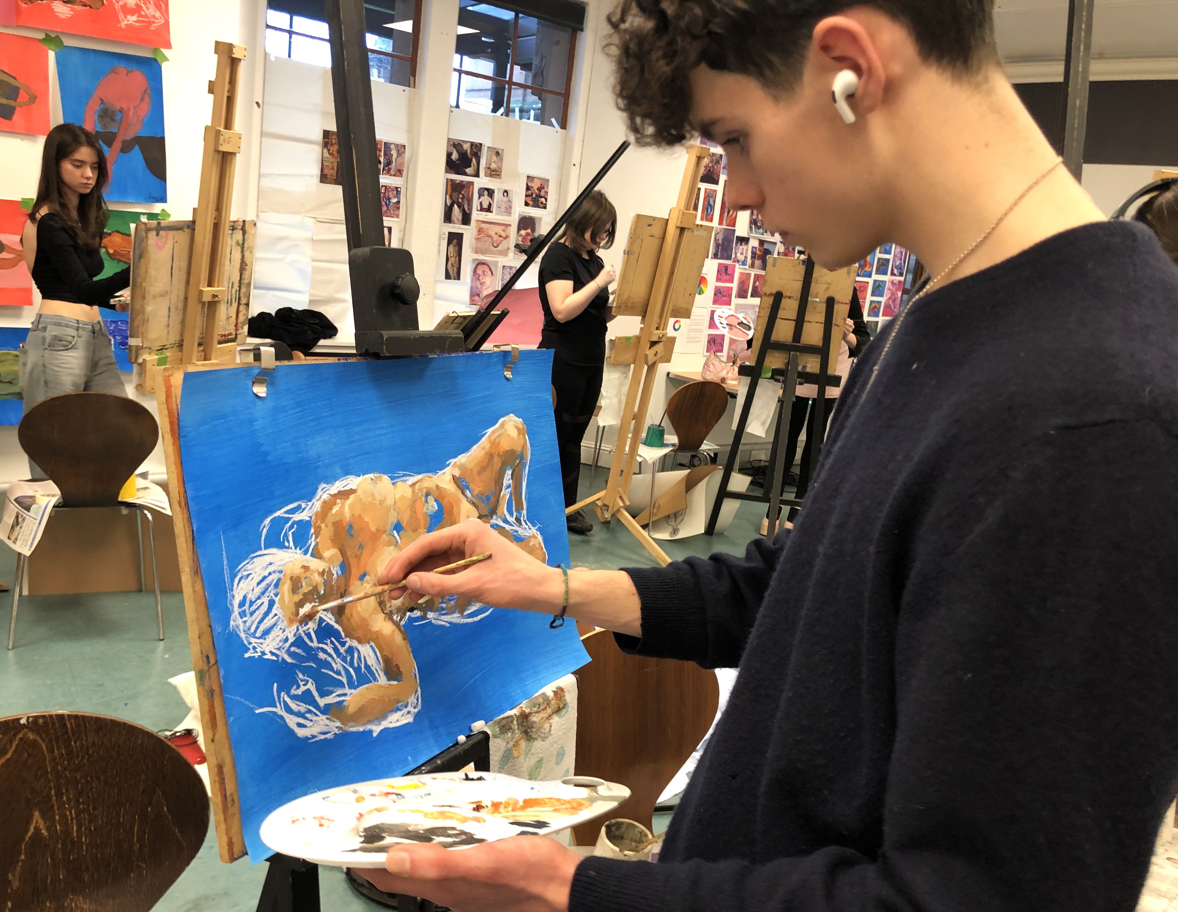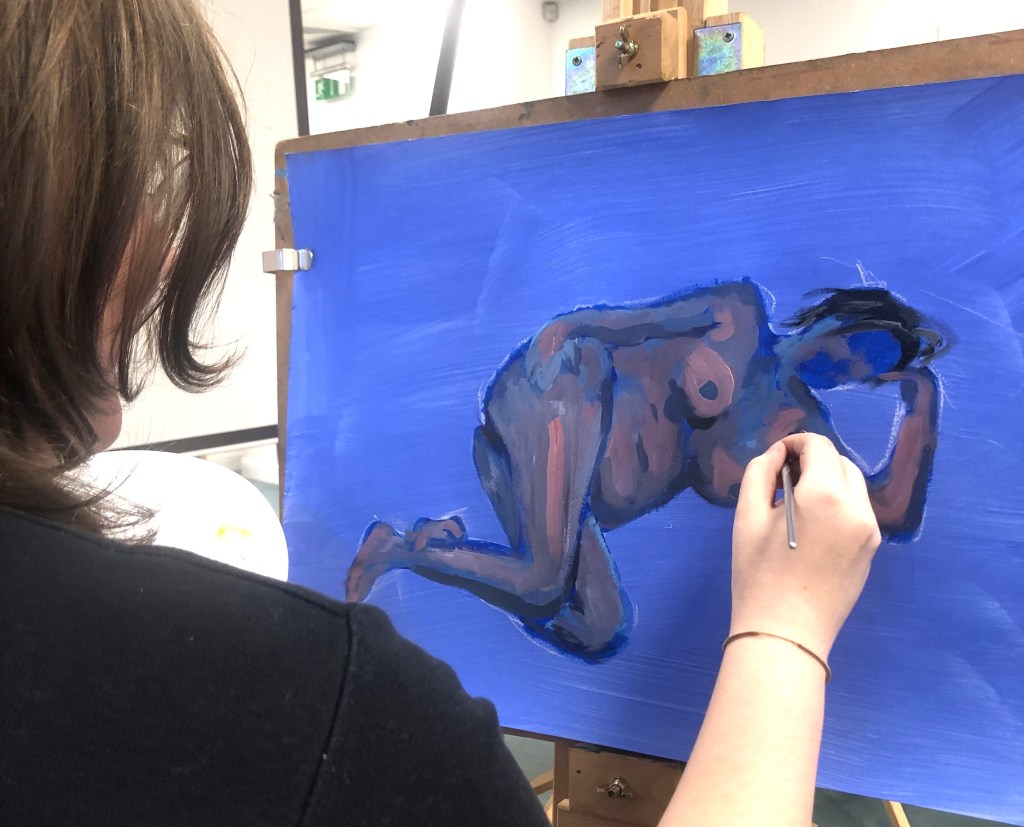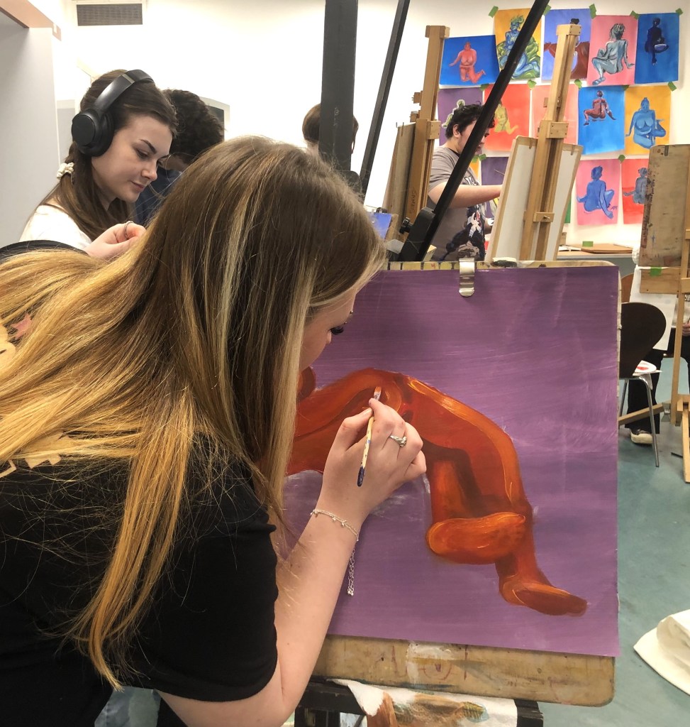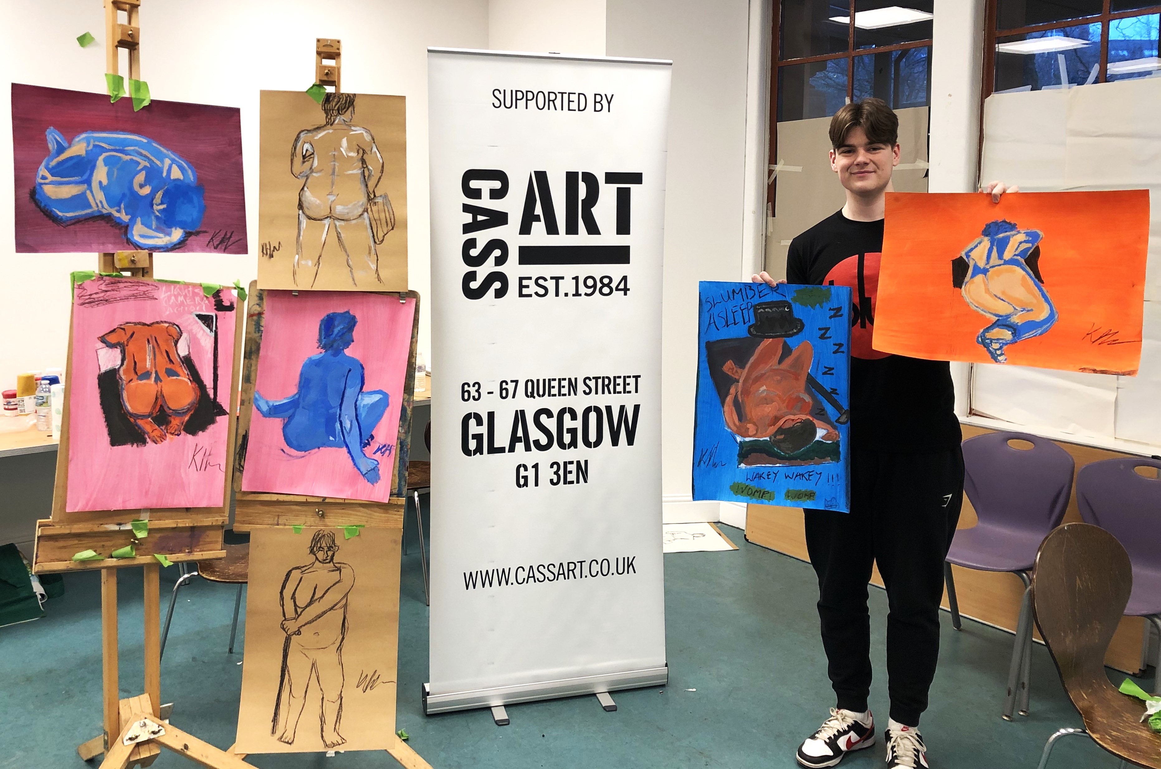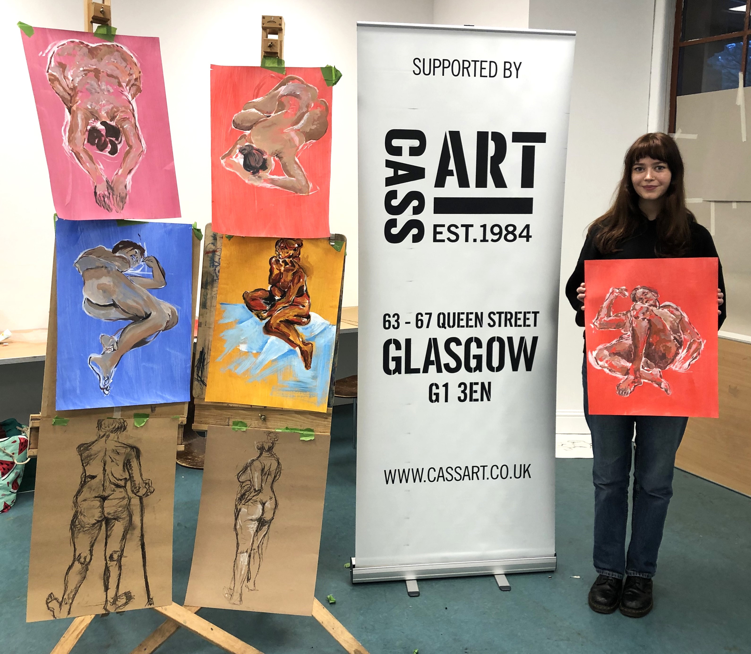This year, artist Claire Paterson, former winner of the Hunt Medal presented by the Trust, led an intensive two-day life-painting workshop at the Kelvingrove Art Gallery and Museum for fifteen pupils from nine schools, including Balfron High School, Hyndland Secondary, Lourdes Secondary, St Mungo’s Academy, Kelvinside Academy, Drumchapel High School, Hutcheson’s Grammar School, St Andrew’s Secondary and Barrhead High School.